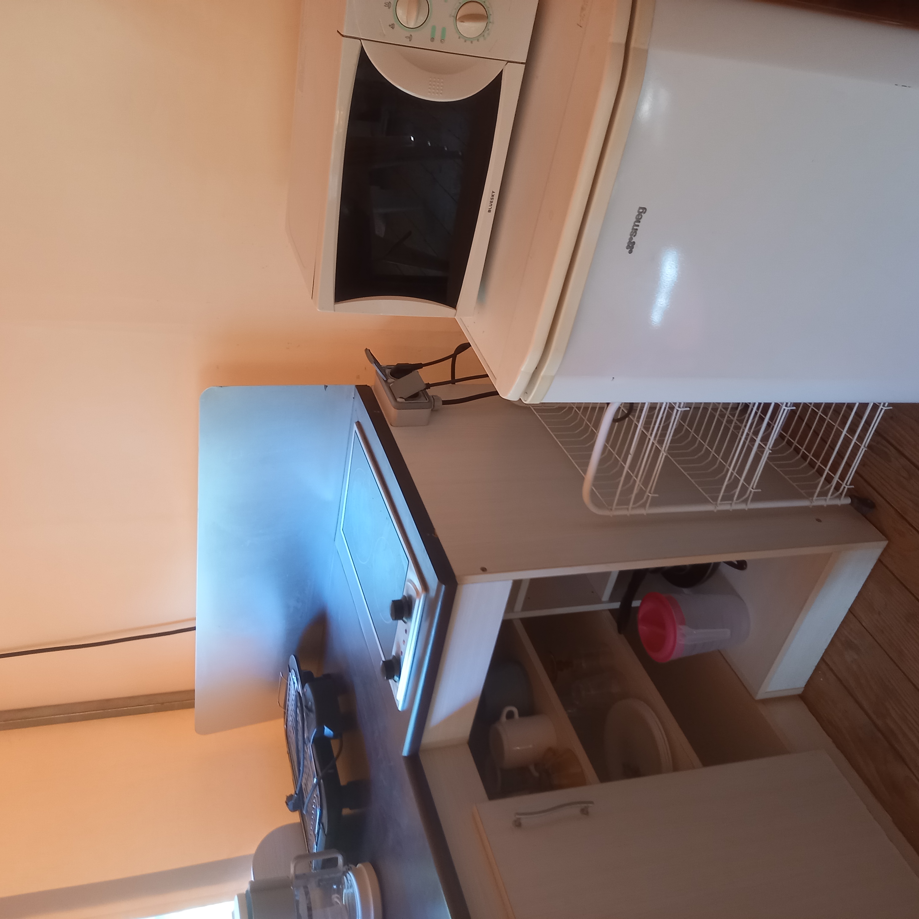Description : Terrasse couverte, salon de jardin. Séjour avec TV, ventilateur. Coin cuisine tout equipé : plaque à gaz, micro-onde, cafetière, mini four, refrigérateur avec freezer, vaisselle, ustensiles de cuisine. 1 chambres avec 1 lit 140x190. Canapé convertible 140x190. Toilettes dans la salle de bain.